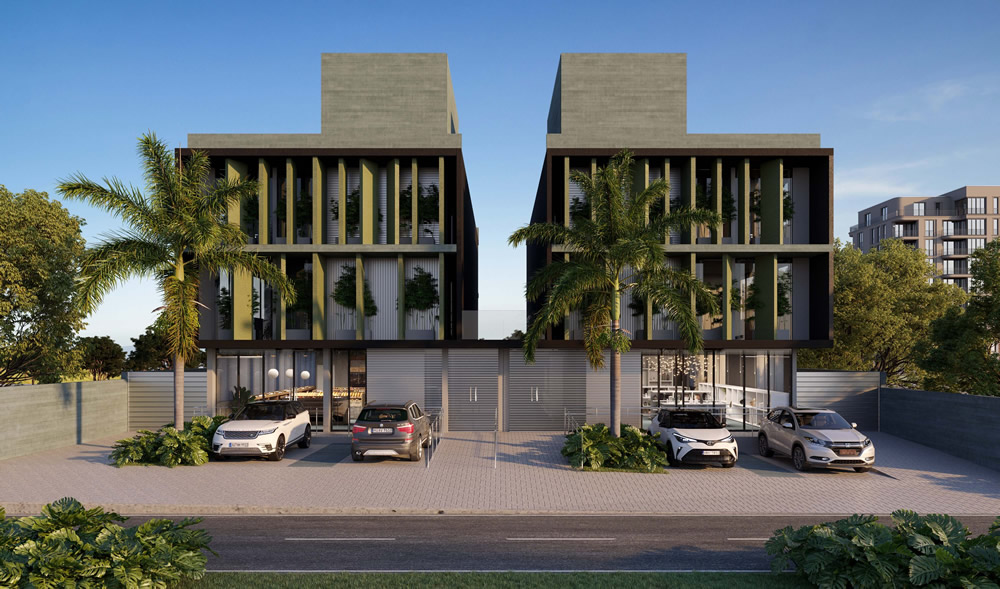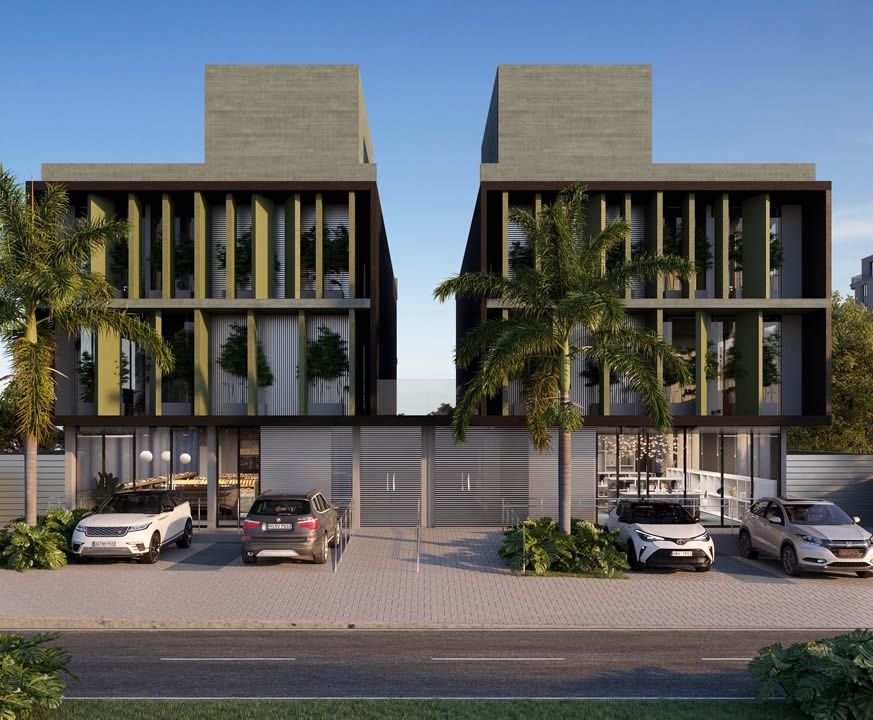 4 Vagas cobertas por laje e 2 vagas de estacionamento frontais por loja
