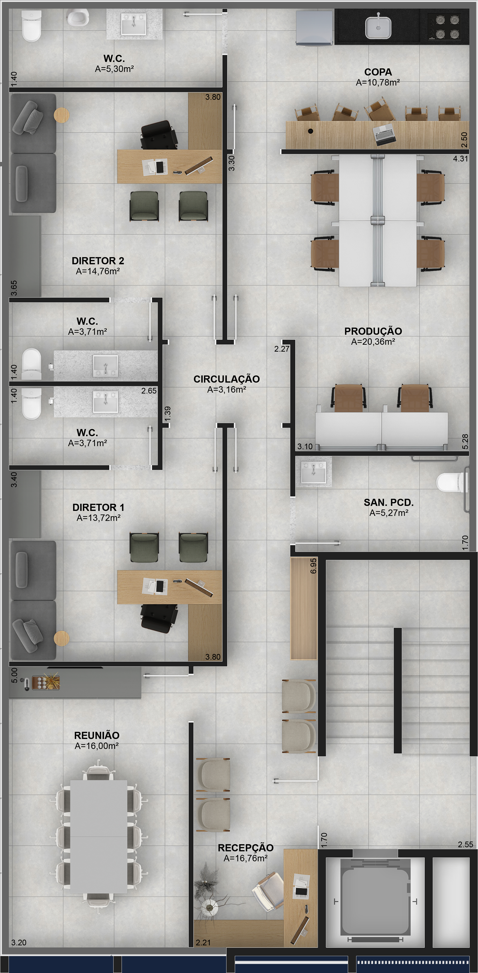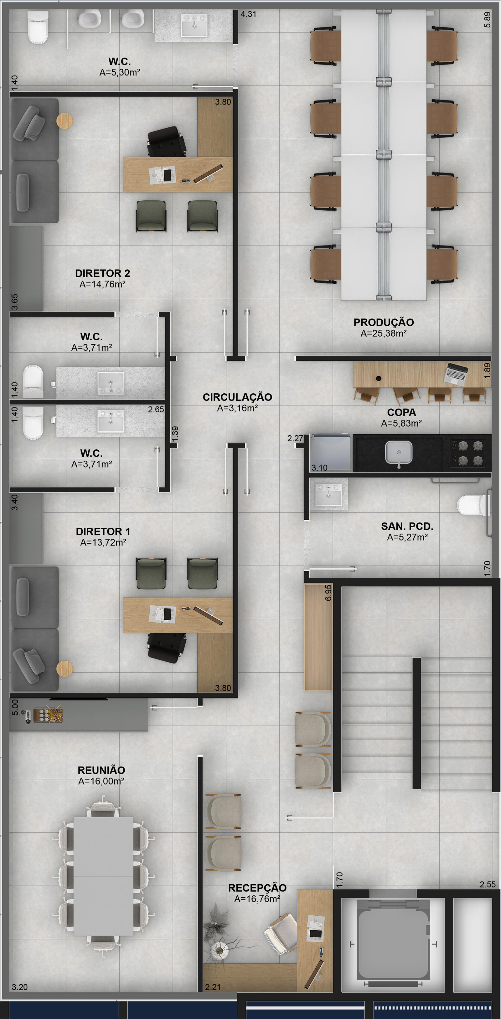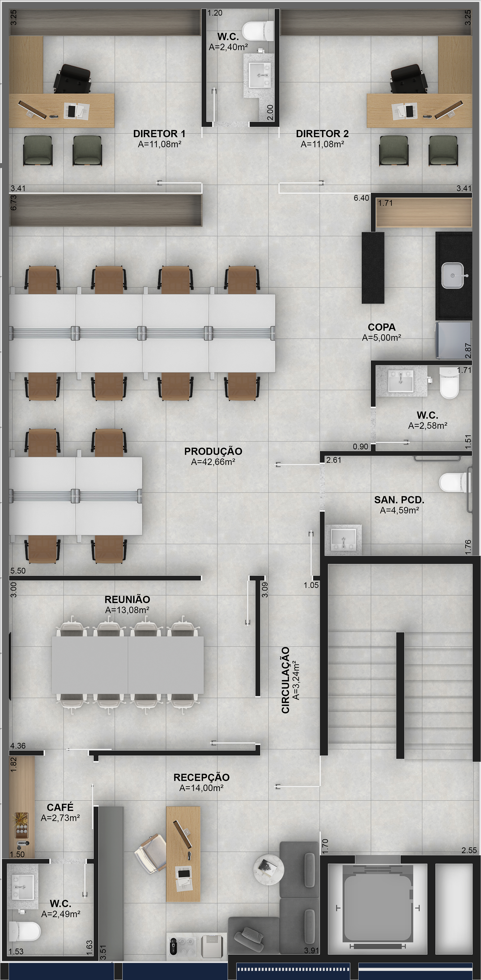 2 lajes corporativas por prédio, cada uma com 140m² (área privativa)
